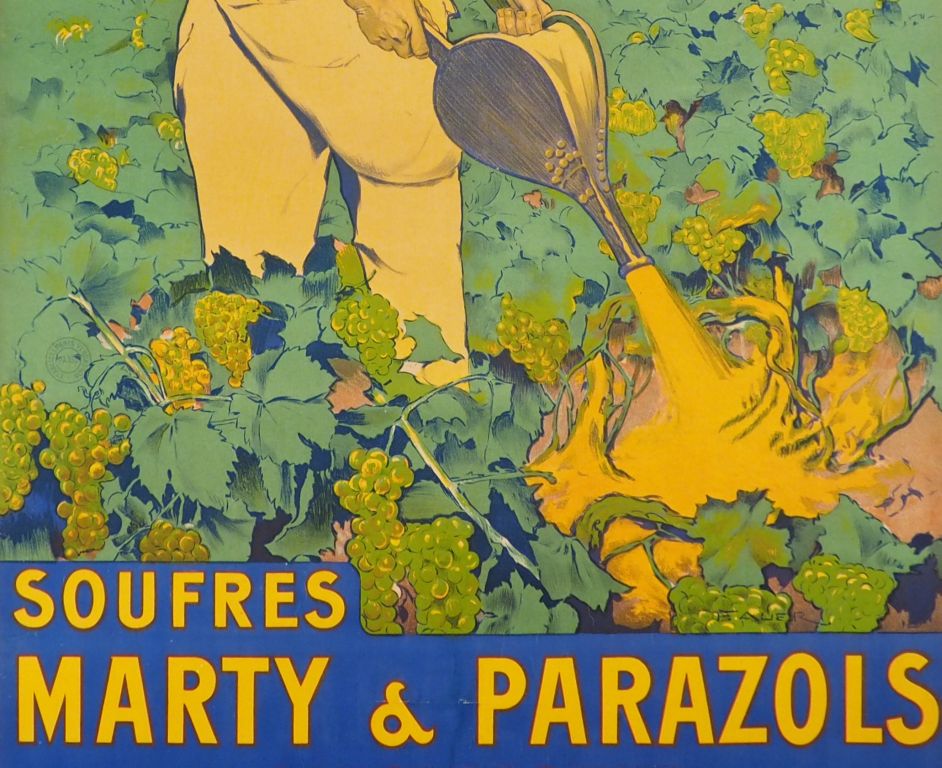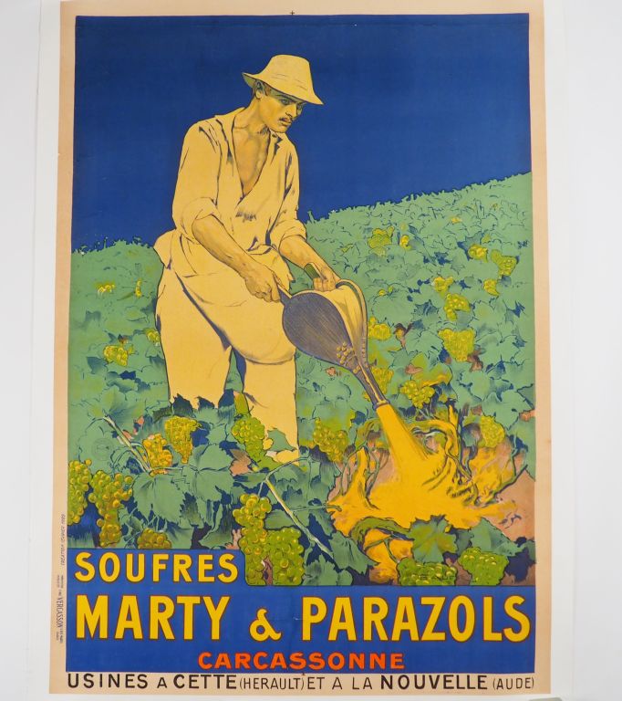 SOUFRES MARTY PARAZOL. Affiche par F. Auer, imprimerie Vercasson, 1922. Condition : A- Entoilée. Dim. : 139x97 cm.