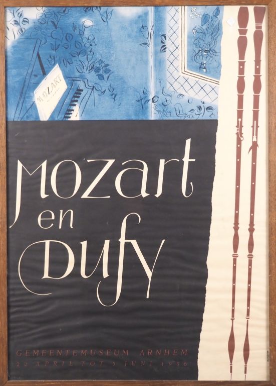 Théo BITTER. Affiche de l'expostion du Gemeente museum à Arnhem en 1956 : "Mozart and Dufy" Dim. 67 x 47 cm