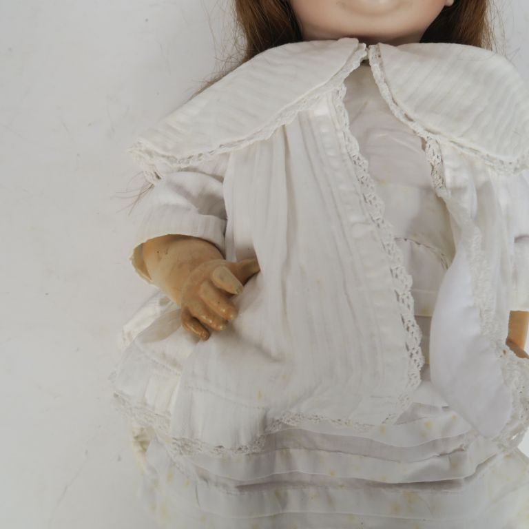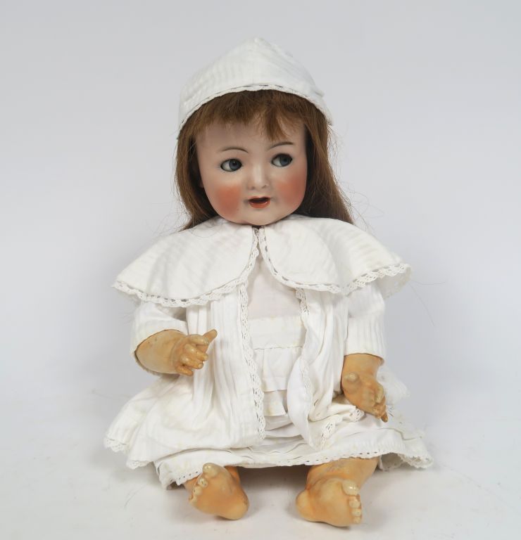 Bébé de caractère Simon et Halbig yeux riboulants bleus, bouche ouverte avec langue et dents moule 126 , taille 42 cm, corps composition en état d’usage.