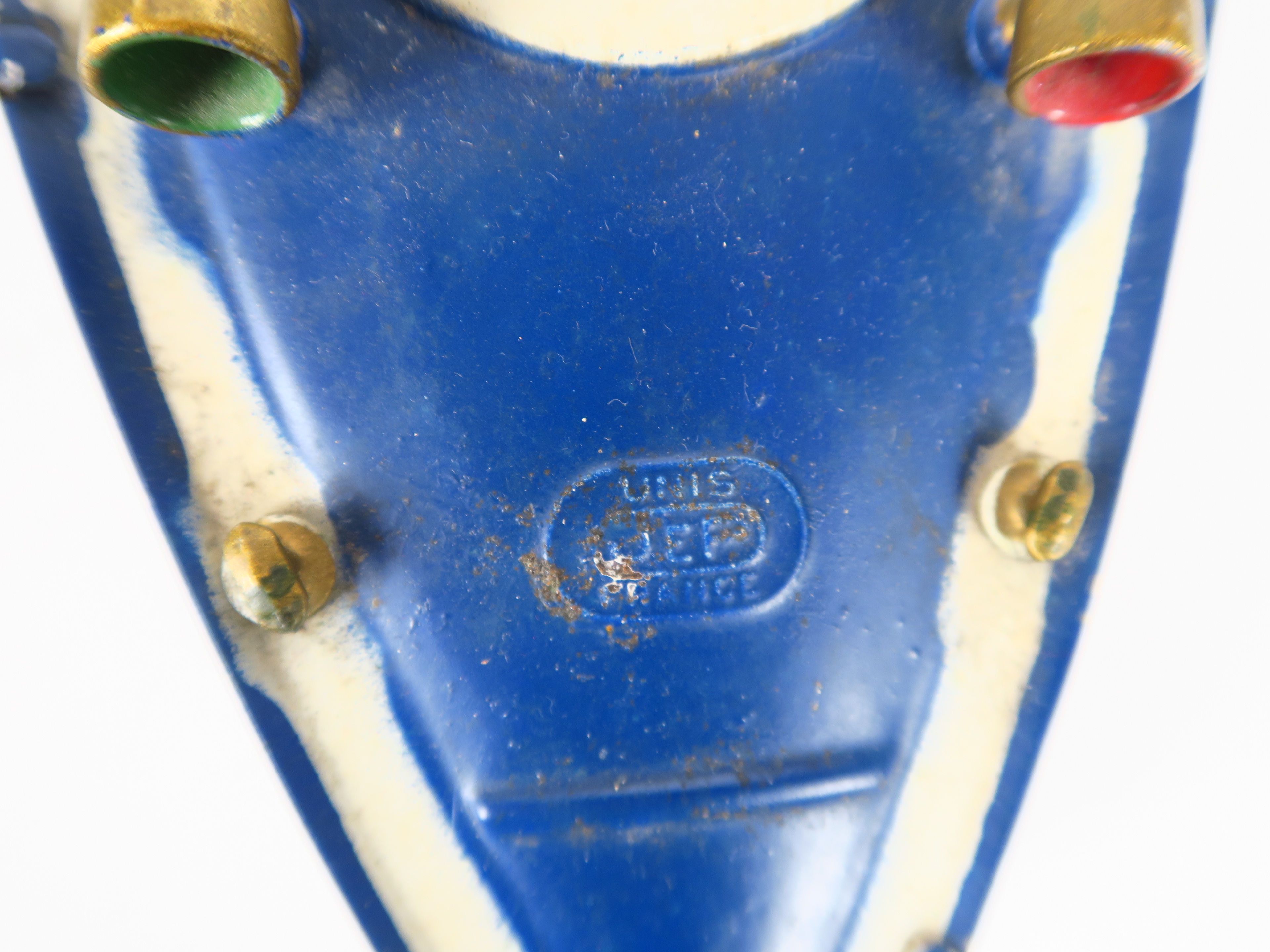 Canot JEP n° 4 ruban bleu, bel état, avec pilote, fonctionnant. Bleu et blanc. Dim. 40 cm