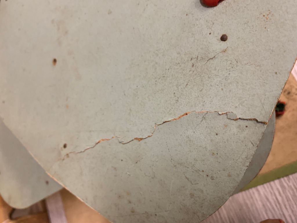 Garage des années 50/60 en isorel et plastique. Dim.21 x 45 x 29,5 cm (toit abîmé, état d'usage).