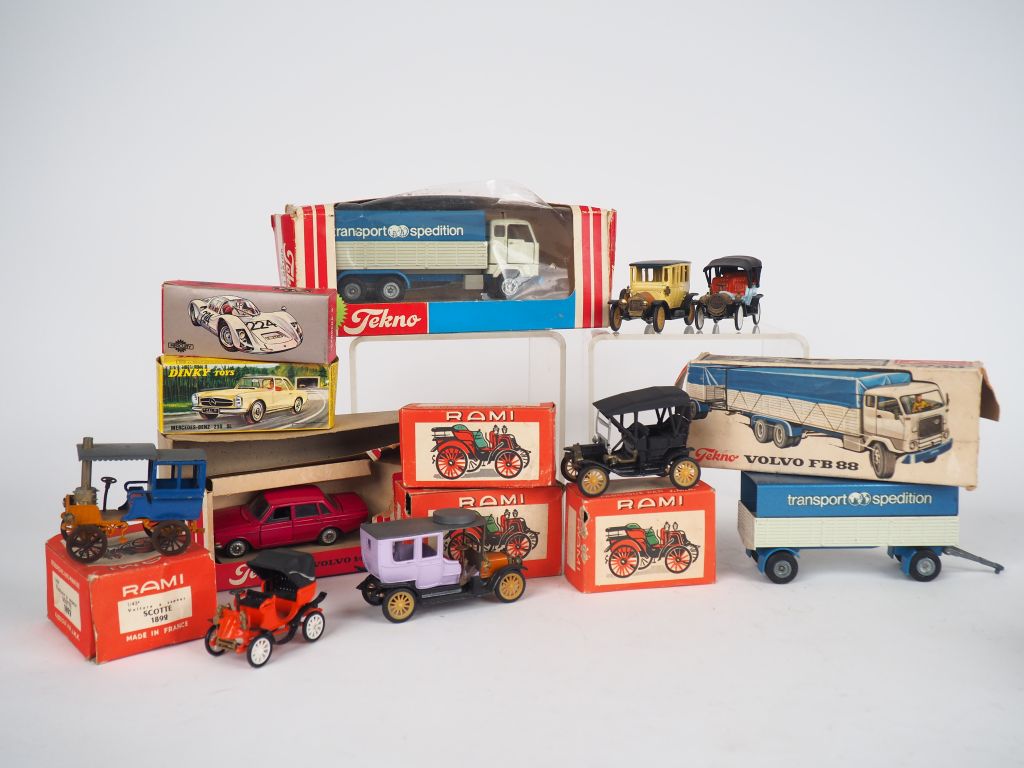 Lot de miniatures au 1/43° RAMI en boite 5 pièces en bel état d'usage. 7 pièces sous boite. On y joint 3 boites vides, 2 boites Volvo contenant une remorque et son camion transport spédition et une voiture Volvo 144 ref. 835 en bel état d'usage avec une partie de boite et 3 boites au 1/43e.