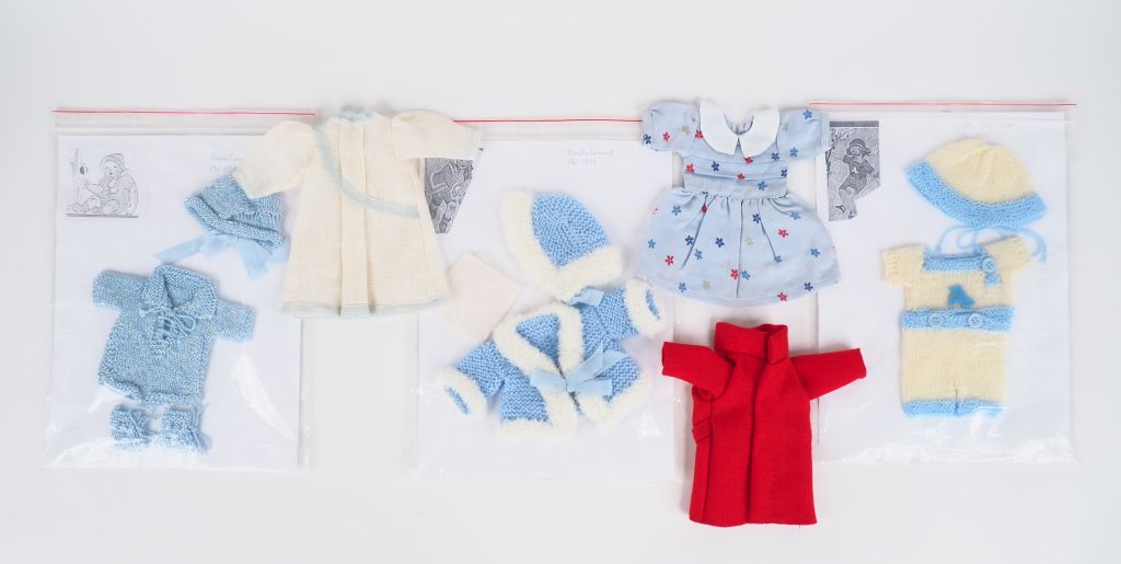 Lot de vêtements de style, dont 3 vêtements Bleuette et 3 tricotés mains bambino.