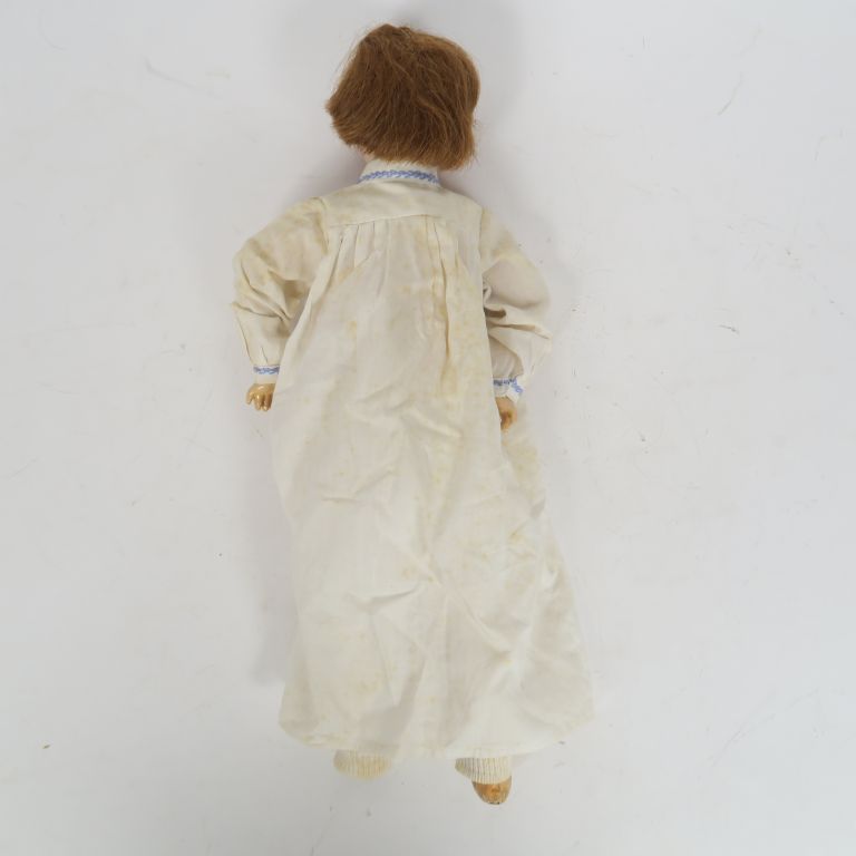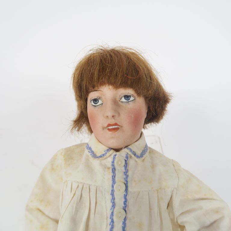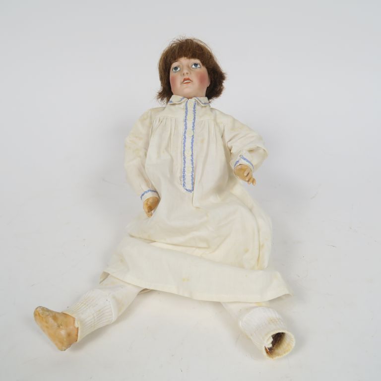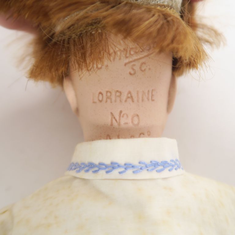 Masson poupée à tête porcelaine marquée Lorraine 0 les yeux sont en intaille la bouche est ouverte fermée le corps en composition 5 pièces en état d’usage avec trace de repeint taille de la poupée 36cm manque un pied.