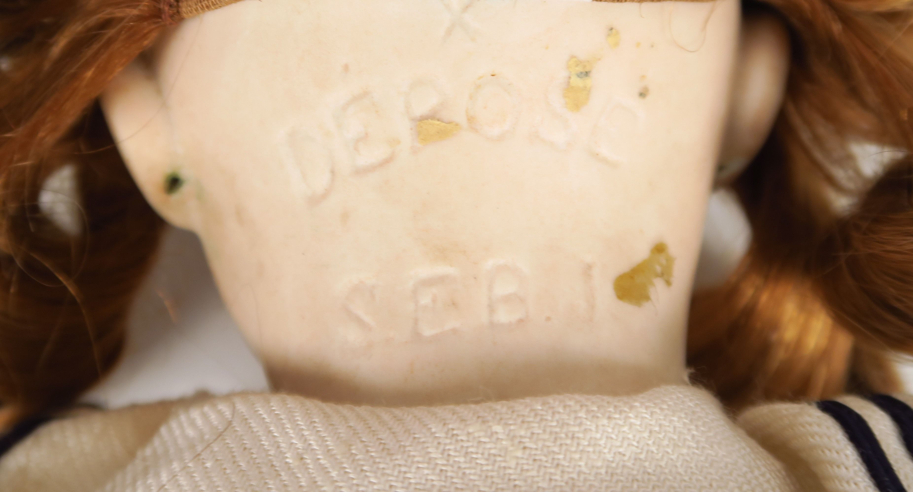 Poupée SFBJ déposée en creux, taille 7, yeux fixes brun, corps en composition articulé d'origine, vêtements de style. Taille 50 cm
