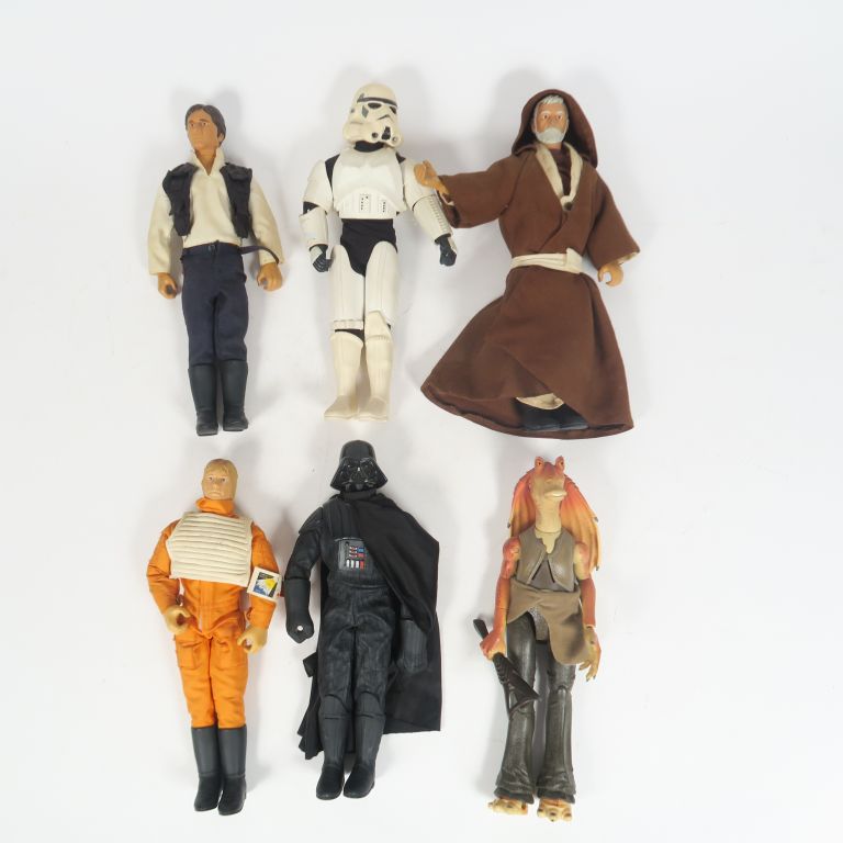STAR WARS. Lot de 6 figurines dont Dark Vador, Luc Sky Waller, Storm Trooper, Obi Wan Kenobi. 30 cm