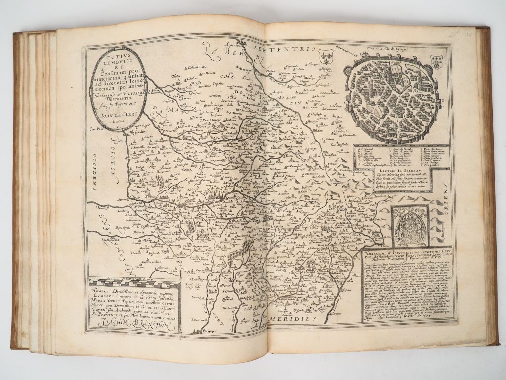 [ATLAS]. HONDIUS (Iud.). NOVA TOTIUS TERRARUM ORBIS GEOGRAPHICA AC HYDROGRAPHICA TABULA. Paris, Mariette, 1642. In-folio Bradel ½ carton marbré, dos lisse, pièce de titre chagrin havane (Reliure fin XIX-début XXe). Les cartes ont été lavées et montées sur onglets. Mouillures, quelques restaurations et petits manques marginaux. ATLAS XVIIe EN NOIR édité par Mariette d’après le cartographe flamand Jodocus HONDIUS (1563-1612). Il est composé de 63 CARTES à double page gravées sur vergé, dont un PLANISPHÈRE (2 manques restaurés). Le lavage a fait perdre son encrage et son contraste à une grande partie des cartes. EN L’ÉTAT.