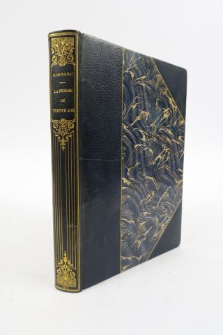 BALZAC (Honoré de). La Femme de trente ans. Couverture illustrée et 35 compositions par A. Robaudi, gravées au burin et à l'eau-forte par Henri Manesse. Paris, Carteret 1902. gd in-8. 1/2 maroquin bleu à coins, dos lisse orné de fil., cartouche et rinceaux dor., tête dor., couv. cons. (Champs). Bel exemplaire.