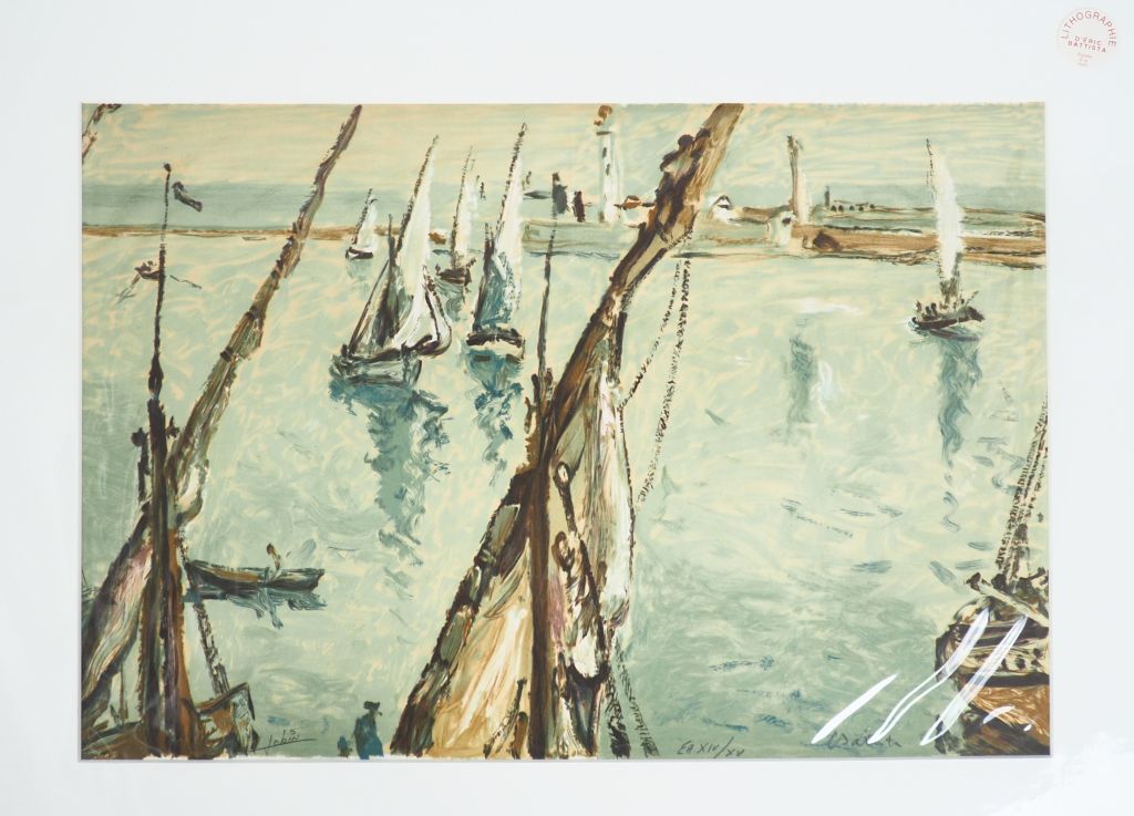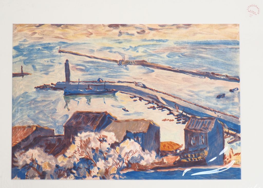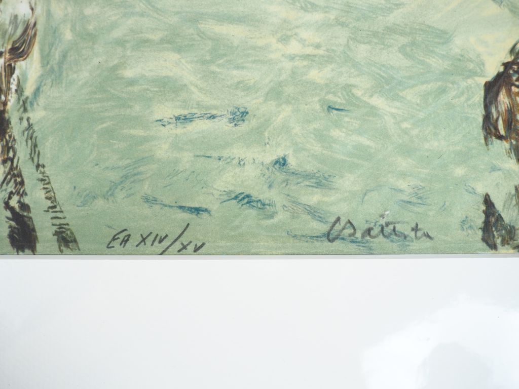 BATTISTA (Éric). ENSEMBLE DE 4 LITHOGRAPHIES COULEURS sur papier Japon, signées à la main par l’artiste. 4 lithographies sous passe (62 X 46 cm), chemise de toile bleue.