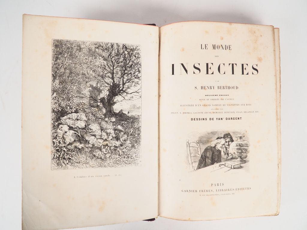 BERTHOUD (Henry). Le Monde des insectes. Deuxième édition. Dessin de Yan Dargent. Paris, Garnier s.d gd in-8. 1/2 basane aubergine, dos long, fil. dor. (Rel. d'époque) Illustrations gravées sur bois hors-texte et vignettes dans le texte