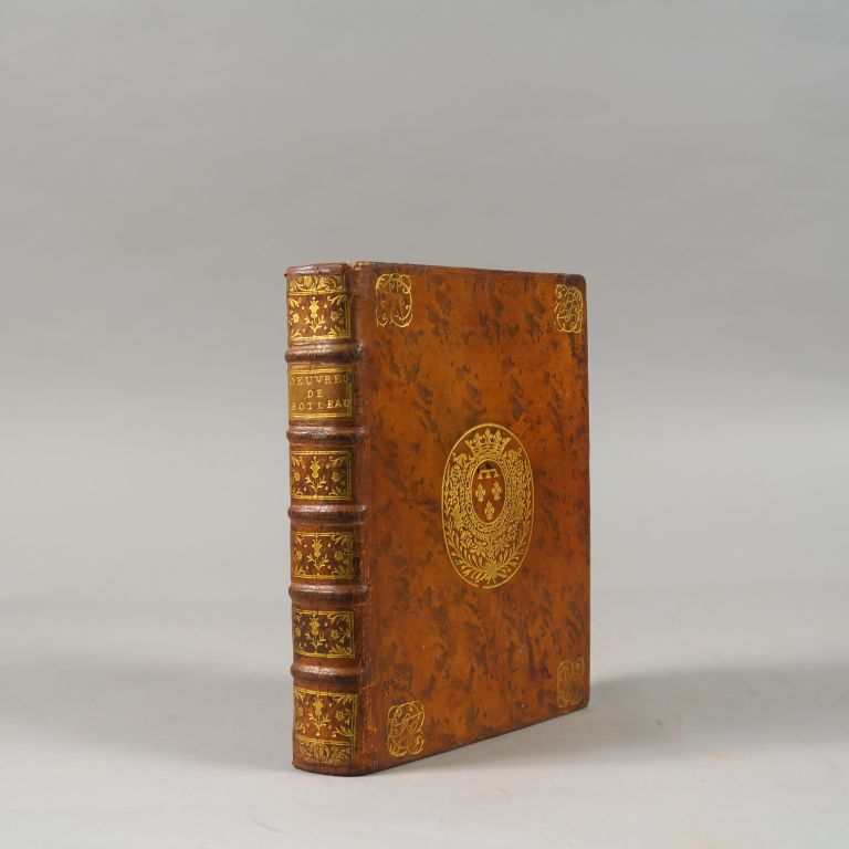 BOILEAU DESPREAUX. Œuvres diverses, avec le Traité du Sublime, ou du Merveilleux dans le discours. Traduit du grec de Longin. Nouvelle édition, revue et augmentée. Paris, Denys Thierry 1701. 2 parties en 1 vol. in-4. Veau marbré, dos orné, Armes au centre et chiffre dorés (Rel. d'époque) Reliure aux Armes et au chiffre de Louis-Philippe d'Orléans. Beau frontispice allégorique gravé par P. Landry