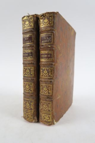 BOSSUT (Abbé). Traité élémentaire d'hydrodynamique. Ouvrage dans lequel la théorie et l'expérience s'éclairent ou se suppléent mutuellement. Paris, Jombert 1775. 2 vol. in-8. Veau moucheté, dos à nerfs, orné (Rel. d'époque). 16 planches dépliantes. Us. aux coiffes et aux coins.
