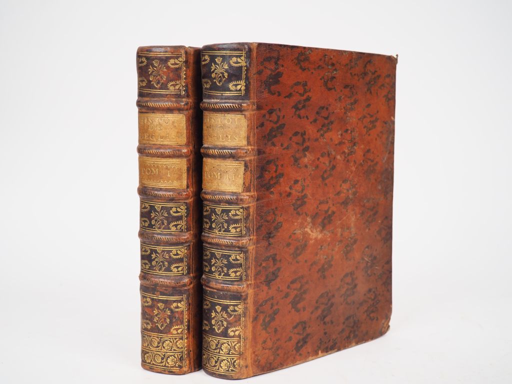 [BOURGOGNE]. DUNOD DE CHARNAGE (F.-I.). HISTOIRE DE L’ÉGLISE, VILLE ET DIOCÈSE DE BESANÇON. Besançon, Daclin Charmet, 1750. Deux volumes in-4 basane fauve marbrée, dos à nerfs orné, pièces de titre et de tomaison, tranches rouges (Reliure de l’époque). Deux coins émoussés, manque de cuir à une coupe, MANQUE le f. de titre du t. 1. Ex-libris de congrégation religieuse collé aux contreplats. ÉDITION ORIGINALE très rare, ornée d’en-têtes gravés sur bois. Cet ouvrage est le complément de l’Histoire des Séquanois et des Mémoires pour servir à l’histoire du Comté de Bourgogne. ¶ Brunet, II-886 – Pas dans Saffroy.