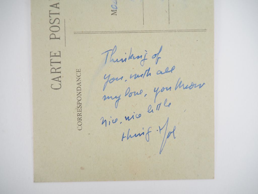 BOUSQUET (Joë). MAGNIFIQUE CORRESPONDANCE INÉDITE ADRESSÉE À GINETTE AUGIER (1912-2001), constituée de 47 LETTRES et d’une CARTE POSTALE. Elle complète la correspondance publiée en 1980 chez Albin Michel, Lettres à Ginette, qui contenait 63 lettres. Tout comme la correspondance publiée antérieurement, ces 47 lettres s’étalent sur une période de 20 ans environ, des années 1930 au décès du poète en 1950. Ce sont ainsi plus de 150 pages d’une correspondance inédite qu’il nous est donné de découvrir, témoignage d’un amour absolu teinté parfois d’une sensualité incandescente « Je pensais à toi, je pense toujours à toi. Je comprenais pourquoi, incompréhensible jusqu’au bout, je pouvais supporter un jour que l’amour d’un homme te rendit femme, te redescendit dans la simplicité vivante de ta chair, moi qui souffre tant de ne te trouver jamais nue qu’à travers les flammes que je porte en moi-même… » mais aussi correspondance intellectuelle dans laquelle le poète fait apparaitre des membres du groupe surréaliste « [Jean] Cassou ? Il est plutôt gros, avec un beau visage, intelligent. Des traits reposés, et il ne porte pas toujours ses grandes lunettes. […]. [Claude-Louis] Estève revient de Paris, où il l’a vu, ainsi que Gala, qu’Eluard, Breton, Ernst… etc. Ce dernier est celui qui insiste le plus pour que je le rejoigne à Paris. » ou s’épanche sur le devenir d’un mouvement artistique qu’il estime condamné « […] le mouvement surréaliste est fini, en tant que mouvement. L’esprit surréaliste est, plus que jamais, entré dans tous les domaines de l’art, et annexé, maintenant, par tant d’écrivains ou de peintres indépendants, se retourne, évidemment, contre Breton, Eluard… L’histoire littéraire rendra à chacun son dû, fera justice de tant de palabres. […] Et une telle vulgarisation de la folie surréaliste (ceci en très bonne part) aide évidemment les détracteurs à dire qu’il n’y a plus de surréalisme… comme il n’y a plus d’aurore, quand il fait jour. Mais le malheur des surréalistes a d’autres causes. Le film, très beau, sur lesquels ils comptaient tant, dans lequel figurait Max Ernst – et tu te souviens que c’est en allant y tenir son rôle qu’il était passé l’année dernière à Carcassonne – ce film, "L’Age d’or" a été interdit. Il y avait un évêque poursuivant une petite fille et dont le fond de culotte – à la fin – prenait feu… Mille autres facéties qui ont justifié (!) l’invasion de la salle par les jeunesses catholiques, et (après une bagarre où l’on a crevé des toiles d’Ernst et de Dali), l’interdiction de passer le film, imposée par la préfecture de police qui n’aime pas les histoires… ». - CHANTIERS / Carcassonne. Ma petite Ginette, Ce que je vois de la tristesse… (2 pp.) - Samedi. Ma chérie. Etait-ce vraiment une dispute ? (2 pp.) - Mercredi soir. Ma chérie : Vite, un mot d’information… (6 pp.). Petit manque en marge inférieure du 3ème feuillet avec perte de quelques mots dont la probable signature de Joë. - Ma chérie. / Je ne sais pas où j’ai mis mon exemplaire de l’Immaculée Conception. [4 pp.]. - 5 novembre. Ma chérie. Je n’ai pas reçu la lettre que tu avais laissée à M. (4 pp.). Petit manque en bas de la marge latérale avec perte de quelques lettres à la 4ème page mais sans perte de mot. - Lundi. Je reprends ma lettre, après ces deux jours… (6 pp.) - Ma chérie. Cassou ? Il est plutôt gros, avec un beau visage, intelligent. (4 pp.). Lettre incomplète : il manque au moins un feuillet… - Ma chérie, Je t’envoie à tout hasard à l’A. G. ce mot qui ne dit rien. (1 p.) - Lundi. Ma chérie / Un dimanche passé dedans tandis que James, … (2 pp.) - Samedi matin. Ma petite chérie. Je t’avais attendue, j’avais comme fouillé… (2 pp.) - Lundi / Ma chérie, ma petite folle, tu sens ton amour-propre atteint… (4 pp.) - Samedi / Oui, mon petit Ginou, j’avais été très atteint… (8 pp.) - Carcassonne, Samedi / Ma chérie / Mais, chiper une lettre, … (4 pp.) - Carcassonne, lundi soir. Ma petite fille tu es là, vivante, devant moi. (2 pp.). Petit manque en marge latérale avec perte de quelques lettres à la 2nde page. - Carcassonne, Jeudi matin. Mon petit Ginou / Et tu n’as pas pensé un instant… (2 pp.) - Carcassonne, 30 décembre. Ce que l’on peut me souhaiter, ma chérie, … (6 pp.) - 25 décembre / Mon petit Ginou chéri… (2 pp.) - Dimanche / Petit Ginou chéri. Je voudrais te dire ma joie. (6 pp.) - Lundi / Ma chérie. Il faisait si bon dans ces ténèbres... (4 pp.) - Mon petit Ginou chéri. Tu as douté de moi, mais je veux que tu... (4 pp.) - Ma chérie. / Je hais trop les gens qui s’emploient à nous séparer … (6 pp.) - Ma chérie / Je t’envoie un mot un peu bref... (2 pp.) - Ma chère petite fille / Enfin ! Je ne t’ai envoyé qu’un mot ce soir. (2 pp.) - Vite, vite, ma grande chérie, tout ce que j’ai à te dire, ... (3 pp.) - Carcassonne, vendredi / Ma chère petite. Malentendu sur malentendu : ... (2 pp.) - Jeudi soir / Ma petite chérie. Brûle la vilaine lettre que tu viens de lire. (2 pp.) - Carcassonne, Il ne faut pas que tu t’inquiètes, ma chérie. (4 pp.) - Carcassonne, vendredi / Mon petit Ginou / Je rouvre ma lettre. (2 pp.) - Jeudi / Mon petit Ginou / Je reçois ton mot : (non il ne manque pas... (2 pp.) - Mon amour, je pense à toi sans cesse. Tu m’as envoyé, tu le sais, des gages… (2 pp.) - Ginette chérie. Un mot, court, mais que je voudrais vivant comme moi-même, ... (2 pp.) - Un mot au galop, mon amour, pour que tu ne sois pas inquiète. (1 p.) avec manque dans l’angle supérieur droit sans atteinte au texte. - Carcassonne, lundi / Ma chérie / C’est une dure épreuve pour le cœur... (6 pp.) - Mon cher petit / Fr. ne peut pas aller à la bibliothèque entre 1 et 4... (1 p.) - Carcassonne, mercredi soir / Oui, mon amour ch
