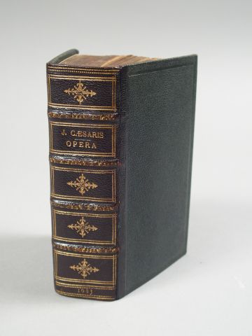 CESAR. C. Julii Caesaris quae extant, cum doctorum virorum emendata. Lug. Botav. Danielem à Gaesbeeck 1683. pt in-12. 1/2 chagr. vert, caissons et fleur. dor. (Rel. du XIXe s.). Frontispice et 42 planches d'illustrations dépl. Papier bruni.