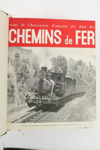 [CHEMINS DE FER]. Revue de l'Association des Amis des Chemins de Fer. De janvier/février 1949 à novembre/décembre 1954. 6 années complètes reliées en 2 vol. in-4. 1/2 chagr. olive à coins, couv. de livraison cons. (Rel. d'époque). Publication abondamment illustrée en noir.