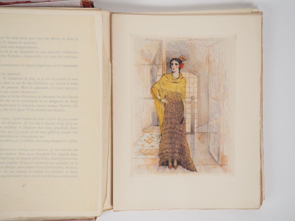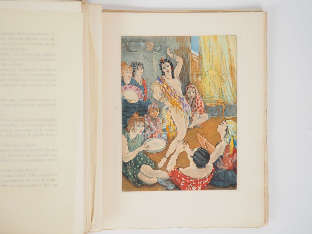 [CHIMOT] TALON (Louis-René). LA BELLE CAROLINA. Paris, Édition Réservée à l’Artiste et à ses Amis, 1936. Grand in-4 en ff. sous couverture à rabats, étui carton (défraichi). ÉDITION ILLUSTRÉE de 17 EAUX-FORTES originales en couleurs d’Édouard CHIMOT. Tirage limité à 184 EXEMPLAIRES. UN des 125 numérotés sur vélin de Rives contenant une SUITE en noir avec remarque des 16/17 eaux-fortes.