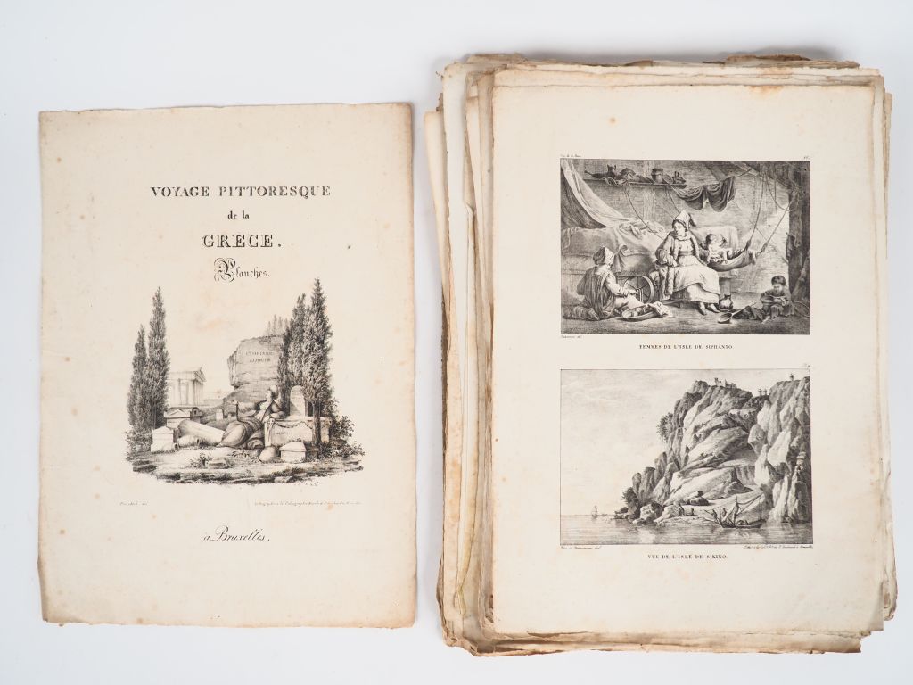 [CHOISEUL-GOUFFIER] Voyage pittoresque. [Paris, Blaise. 1782-1822]. Suite de planches. Titre et 88 planches gravées d'après Delepierre, Choffart, Lauters, Petermans, Lemonnier, Qqs rousseurs en marge des gravures