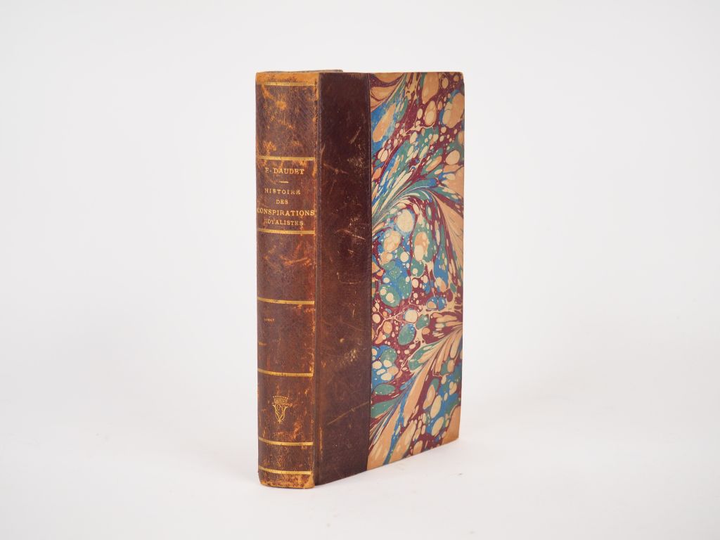DAUDET (Ernest). Histoire des conspirations royaliste du Midi sous la Révolution (1790-1793). Paris, Hachette 1881. in-12, 335 pp. 1f. 2 cartes dépliantes. Bradel demi cuir de Russie (Rel. d'époque)