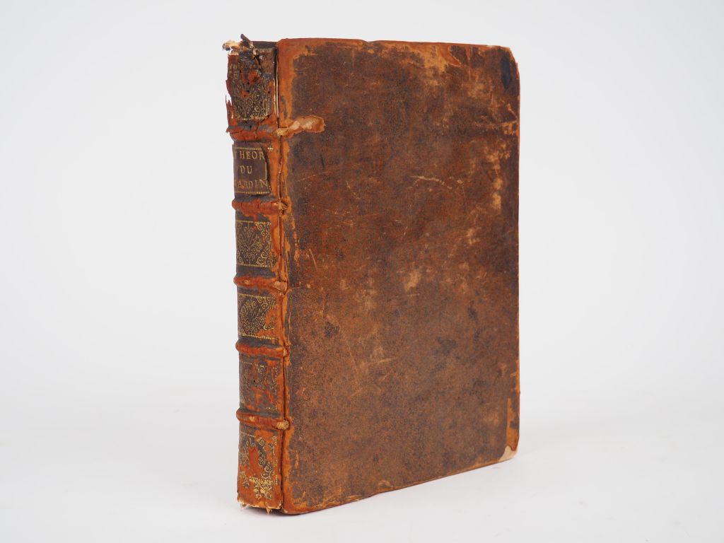 DEZALLIER D'ARGENVILLE. La Théorie et la pratique du jardinage, où l'on traite à fond des beaux jardins, appelés communément Le Jardin de plaisance et de propreté… Nouvelle édition. Paris, Jean Mariette 1713. in-4. Veau moucheté (Rel. de l'époque). Coiffes arrachées, un mors fendu mais solide, usures aux coins et aux coupes. 39 planches doubles, montées sur onglet ou dépliante. Travail de vers en pied à une partie des cahiers.