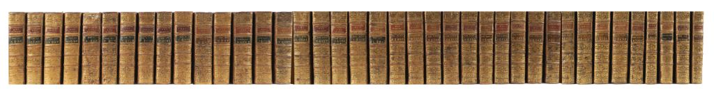 DIDEROT - D'ALEMBERT. Encyclopédie ou Dictionnaire raisonné des Sciences, des Arts et des Métiers. Genève, Pellet 1777-1779. 39 volumes in-4 veau fauve marbré, dos à nerfs orné, pièces de titre et de tomaison maroquin, tranches marbrées (Reliure de l’époque). Manque de cuir à la coiffe supérieure du tome V, un coin ouvert au t. I des planches. TROISIÈME ÉDITION DE CETTE MONUMENTALE PUBLICATION. Elle est composée de 39 volumes : 36 volumes de texte et 3 volumes de planches. PORTRAITS de Diderot et D'Alembert gravés par Cathelin d'après Cochin en frontispice des tomes I et II, 500 GRAVURES sur cuivre environ reproduites en 443 PLANCHES h.-t., sous la direction de Benard, dont de nombreuses dépliantes ou à double page , quelques tableaux dépliants h.-t. sont répartis dans les volumes de texte. Cette édition comprend les corrections et additions faites aux articles de l'édition de Paris. On y trouve également des articles nouveaux, signalés par les lettres « A.N. ». Ces articles ne se rencontraient ni dans le Dictionnaire, ni dans les Suppléments. Les auteurs des articles sont indiqués par des lettres dont la clef est donnée dans les premières pages du volume 7. On apprend ainsi que la lettre « o » correspond au marquis de Condorcet, tandis que la lettre « S » est attribuée à Jean-Jacques Rousseau. Le dernier volume de texte, le tome 36, contient les additions à quelques articles, et les éloges de certains des collaborateurs à cet ouvrage, parmi lesquels : Montesquieu, Du Marsais, Lenglet Du Fresnoy et Edme Mallet. Exemplaire en BEL ÉTAT, frais.