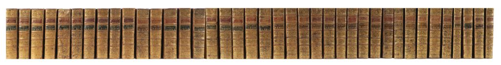 DIDEROT ET D'ALEMBERT. Encyclopédie ou Dictionnaire raisonné des Sciences, des Arts et des Métiers. Nouvelle édition. Genève, Pellet 1777-1779. 36 vol.de texte + 3 vol. de planches in-4. Veau marbré, caissons ornés et pièces de titre au dos, tranches marbrées. Portraits de Diderot et de D'Alembert, gravés d'après C.N Cochin en frontispice des tomes I et II. 443 planches gravées sur cuivre, sous la direction de Benard, dont de nombreuses dépliantes, doubles ou triples et quelques tableaux dépliants dans le volume de texte. Bel exemplaire, frais, malgré quelques menus défauts : un petit manque de peau à la coiffe supérieure du tome V, un coin éventré au tome I des planches.
