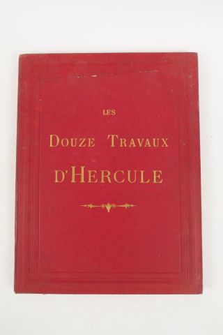 DOUZE TRAVAUX D'HERCULE (Les), illustrés par A. COINCHON, lithographiés par Henri SEVENET. Paris, Becquet s.d. (ca 1870). in-4. Percaline rouge, titre doré (Rel. éditeur). L'Antiquité drôlatique en 59 planches lithographiées en 2 couleurs (noir et orange).