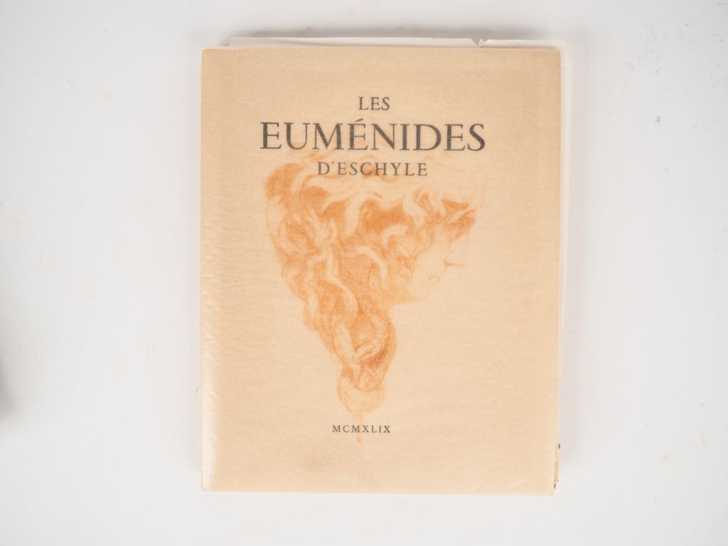 ESCHYLE. Les Eumérides. Traduction inédite de Jean-Philippe ANIEL. Gravures de HERTENBERGER. Paris, Editions Gemini 1949. in-4 en ff. Chemise et étui. Eaux-fortes en noir hors-texte et dans le texte. Tirage unique. 350 ex. sur vélin de Lana. Celui-ci enrichi d'un envoi de l'artiste