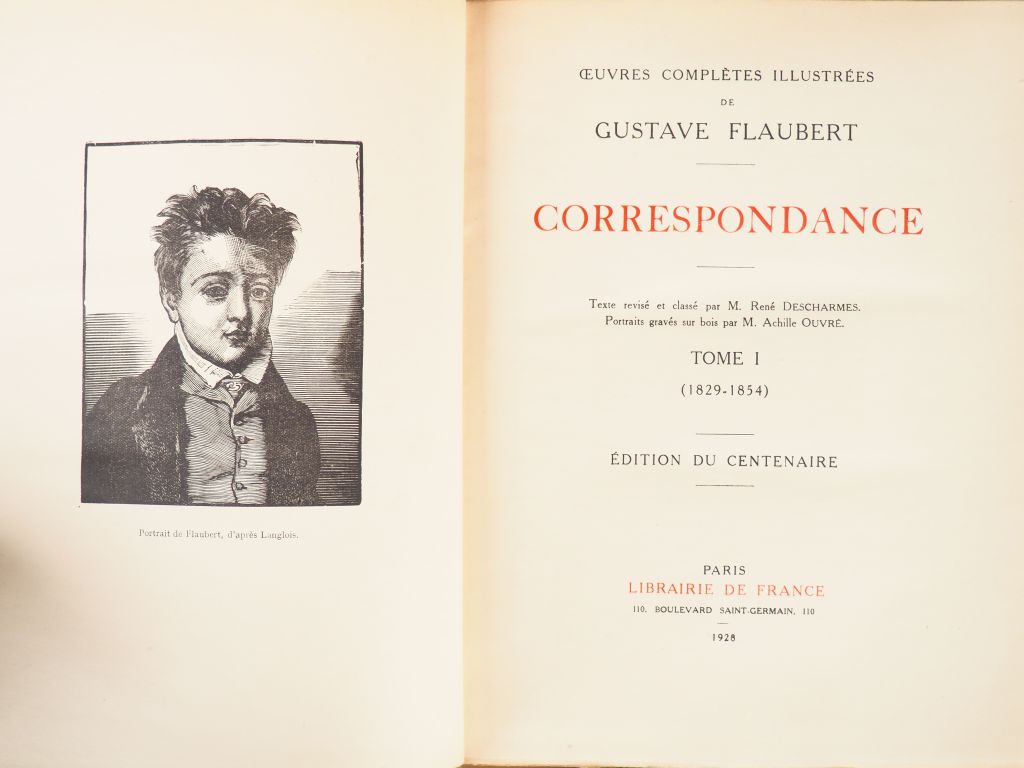 FLAUBERT (Gustave). Œuvres complètes illustrées. Edition du Centenaire. Paris, Librairie de France 1925-1928. 10 vol. in-4. Reliure demi-chagrin vert à coins, couv. Cons. têtes dorées (dos passés). Illustrations de Bourdelle, Dunoyer de Segonzac, Lombard, Valloton, Achille Ouvré. 10 volumes seuls, sur 14 parus