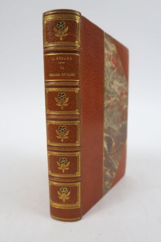 GÉRARD (Dr J.). La Grande Névrose. Illustré par José Roy. Paris, Marpon et Flammarion s.d. in-12. 1/2 maroquin rouille à coins, dos orné de fleur. mosaïqué, tête dor., couv. cons. (Grandghaud). Couverture illustrée en couleurs, vignettes en noir dans le texte.