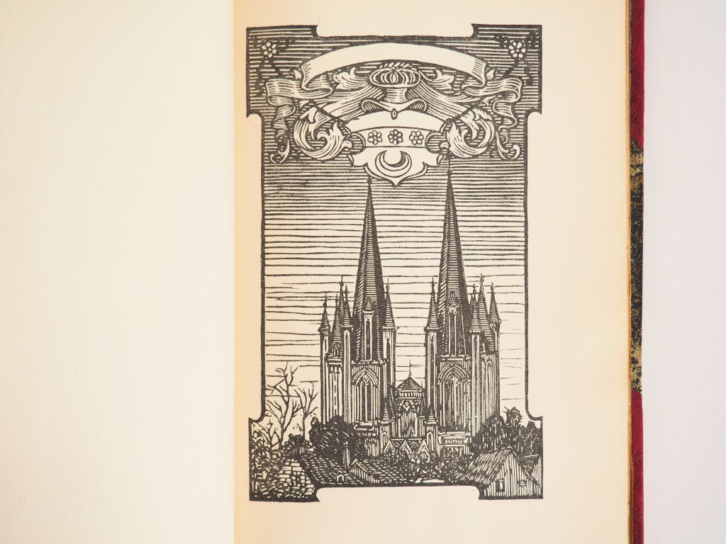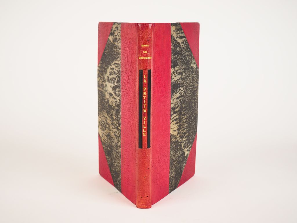 GOURMONT (Rémy de). La Petite Ville, suivie de Paysages. Frontispice et en-têtes gravées sur bois par Louis Jou. Paris, Société littéraire de France 1916. in-8. Rel. d'époque demi-maroquin rouge à coins, titre à la chinoise, surligné de listels de mar. noir. Edition originale. Ex. sur vélin blanc num.