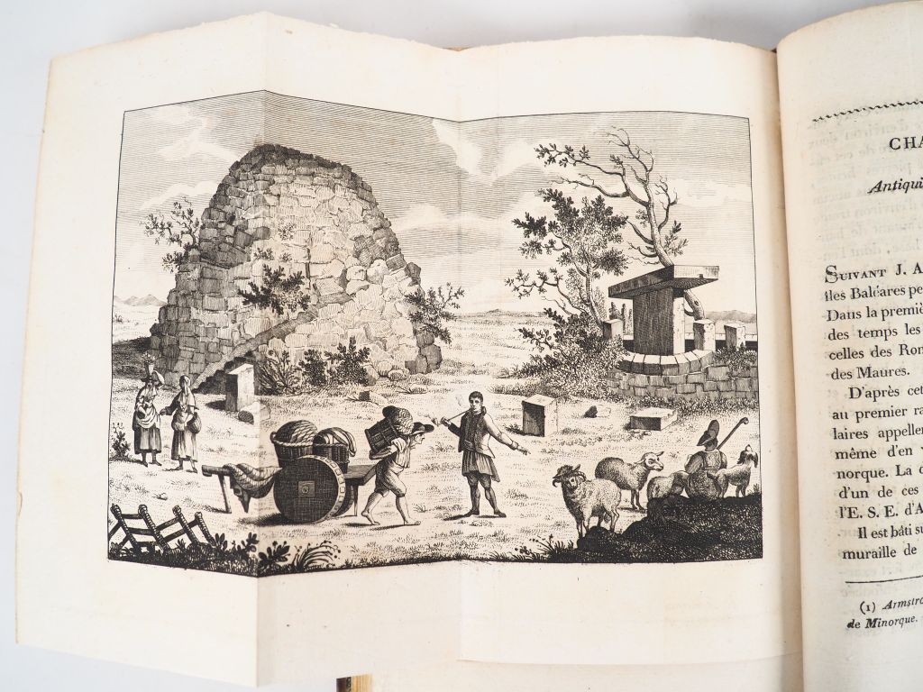 GRASSET DE SAINT-SAUVEUR (A.). VOYAGE DANS LES ILES BALÉARES ET PITHIUSES , fait dans les années 1801, 1802, 1803, 1804 et 1805. P., Collin, 1807. In-8 veau fauve glacé, encadrement de roulette dorée sur les plats teintés d’une marbrure en vert et noir, dos lisse cloisonné et orné de galions dorés, pièce de titre maroquin rouge (Reliure de l’époque). ÉDITION ORIGINALE. 3 PLANCHES gravées dont 2 dépliantes. ¶ Palau, 108746.