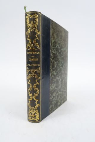 HOFFMANN. Contes fantastiques. Traduction nouvelle préc. de souvenirs intimes sur la vie de l'auteur par P. Christian. Illustrés par GAVARNI. Paris, Lavigne 1843. in-8. 1/2 veau ardoise, dos lisse orné d'un décor rocaille dor., tr. dor. (Rel. romantique). Illustration gravée sur bois dans le texte et hors-texte. Papier très lég. bruni en marge.