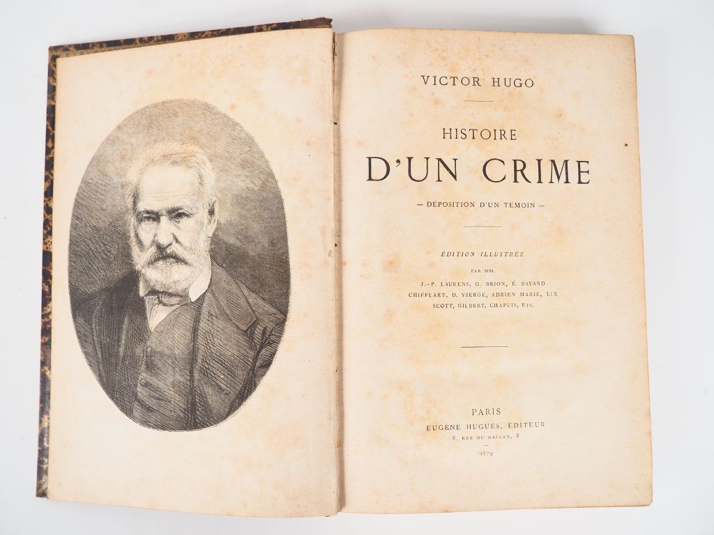 HUGO (Victor). Histoire d'un crime. -Déposition d'un témoin. Edition illustrée par J.P. Laurens, Brion, E. Bayard… Paris, Eugène Hugues 1879. gd in-8. Rel. d'époque demi-basane havane, dos lisse, fil. dor.