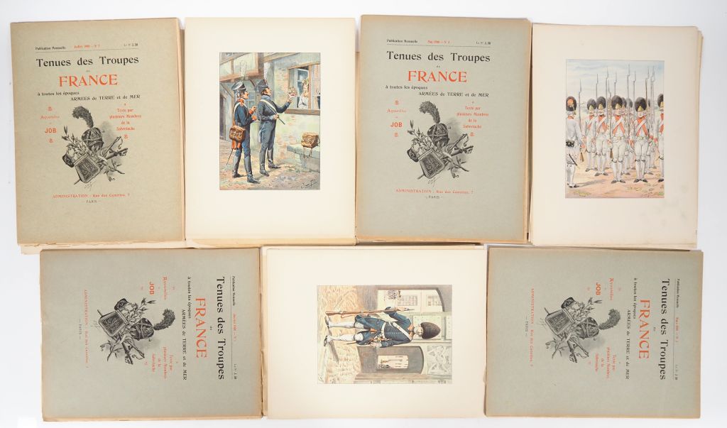 JOB. "Tenue des troupes de France". Lot de 14 fascicules : - Novembre/Décembre 1901. (2 fascicules) - Janvier-Décembre 1900. (12 fascicules)