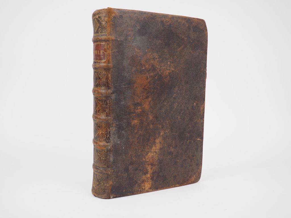 LA SAINTE BIBLE, qui contient le Vieux et le Nouveau Testament, c’est-à-dire l'Ancienne et la Nouvelle Alliance. Revue et corrigée sur le texte hébreu et grec par les Pasteurs et les Professeurs de l'Eglise de Genève. Avec les nouveaux arguments et les nouvelles reflexions de J. F. Ostervald. Amsterdam, J.F Bernard et Herman Uitwerf 1724. in-folio. Veau brun, dos orné (Rel. d'époque). Usures à deux coins. Gardes et page de titre débrochés, avec quelques manques.