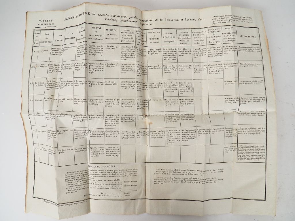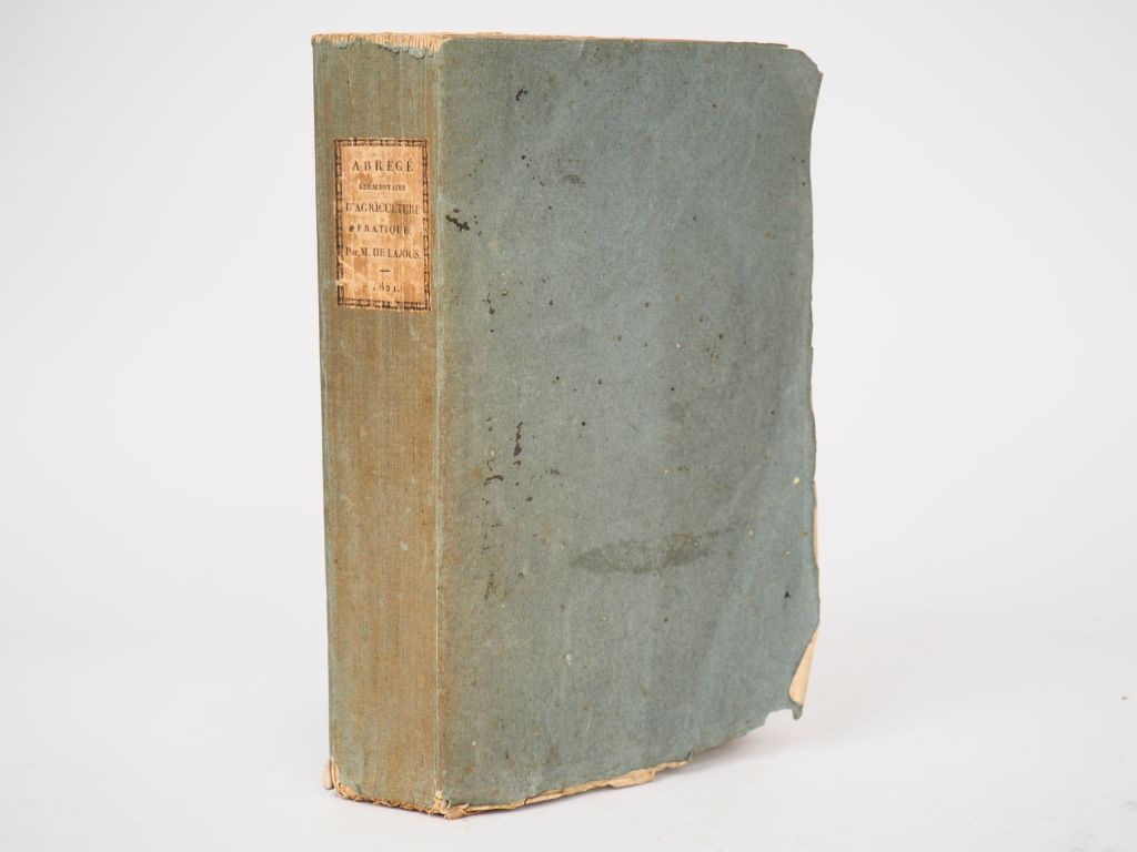 LAJOUS (de). ABRÉGÉ ÉLÉMENTAIRE D’AGRICULTURE PRATIQUE. Toulouse, Douladoure, 1821. In-8 broché, couverture brochée d’attente, étiquette papier de titre au dos. ÉDITION ORIGINALE. Un TABLEAU et une PLANCHE de reproductions d’outils agricoles.