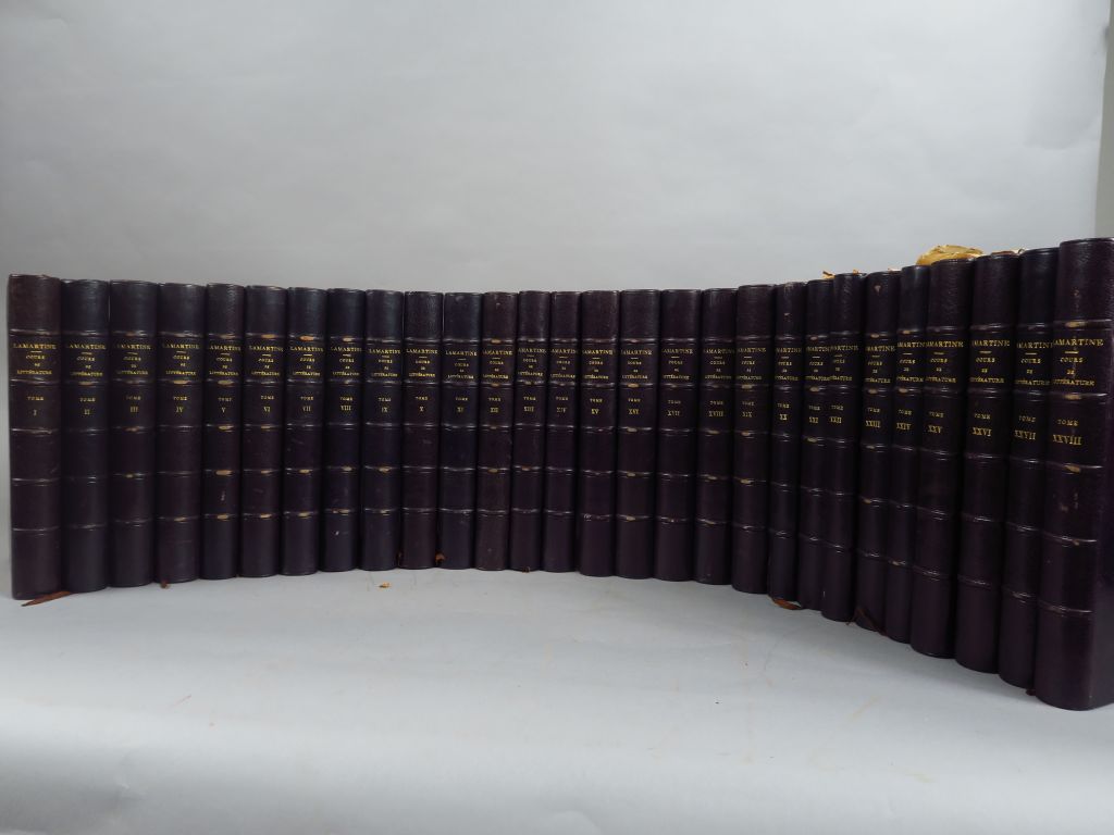 LAMARTINE (Alphonse de). Cours familier de littérature. Un entretien par mois. Paris, chez l'Auteur 1856-1869, 28 vol. gd in-8. 1/2 chagr. Prune à coins (Rel. de l'époque)