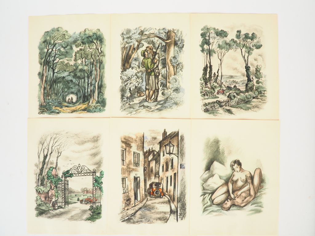 LAWRENCE (D.-H) Lady Chatterley. Version originale traduite par Annie Brierre. Illustrations de André COLLOT. Paris, Deux-Rives 1946. pt in-4 en ff. Chemise et étui. 6 illustrations en couleurs sous chemise. Tirage : 1025 ex. 1/1000 vélin velouté