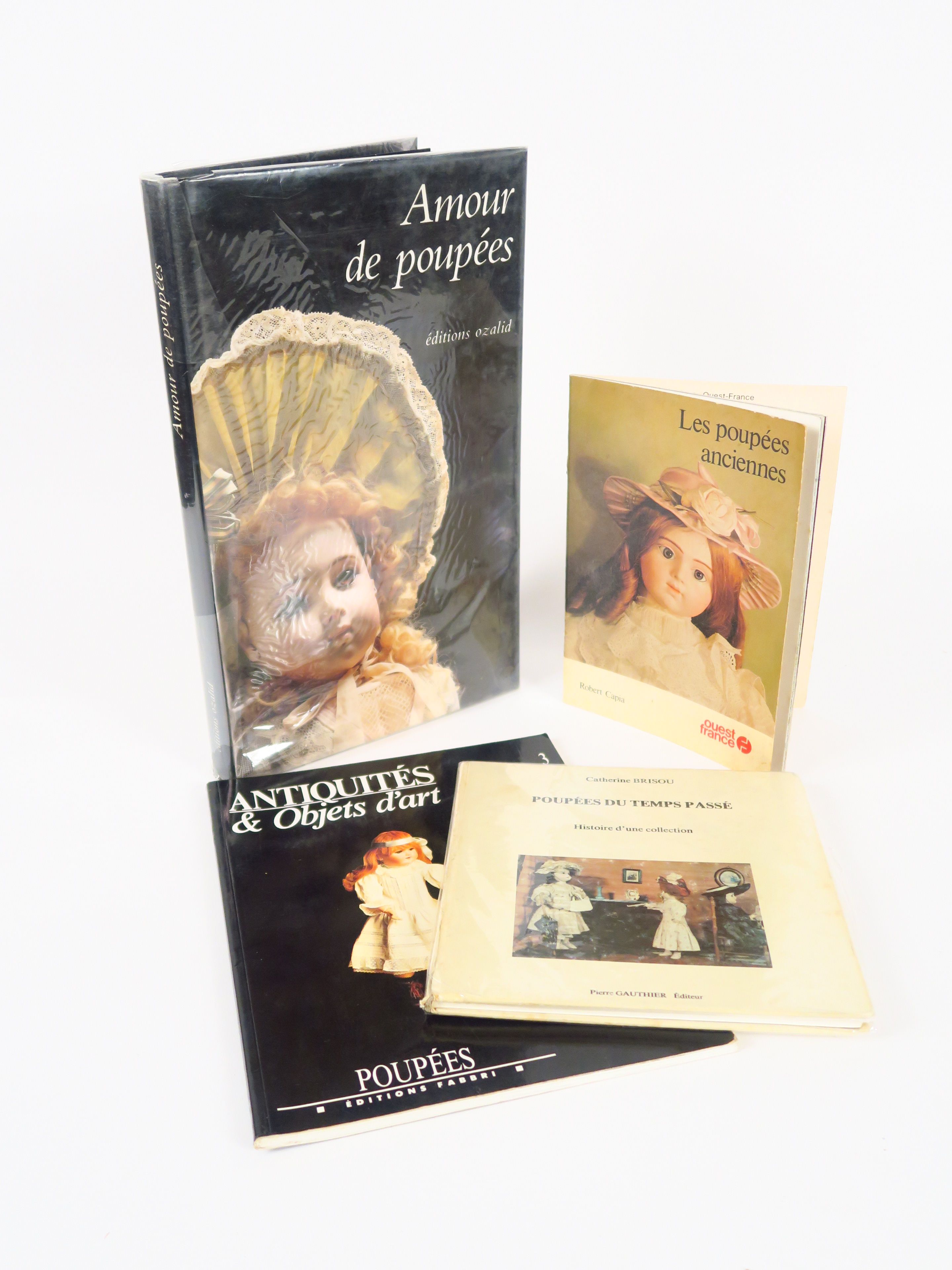 Lot de 4 volumes sur les poupées dont : - les poupées anciennes Ouest France Robert Capia - poupées du temps passé Catherine Brissou - Antiquité et objets d'Art poupées - Amour de poupée Edition Ozalis (très belles illustrations)