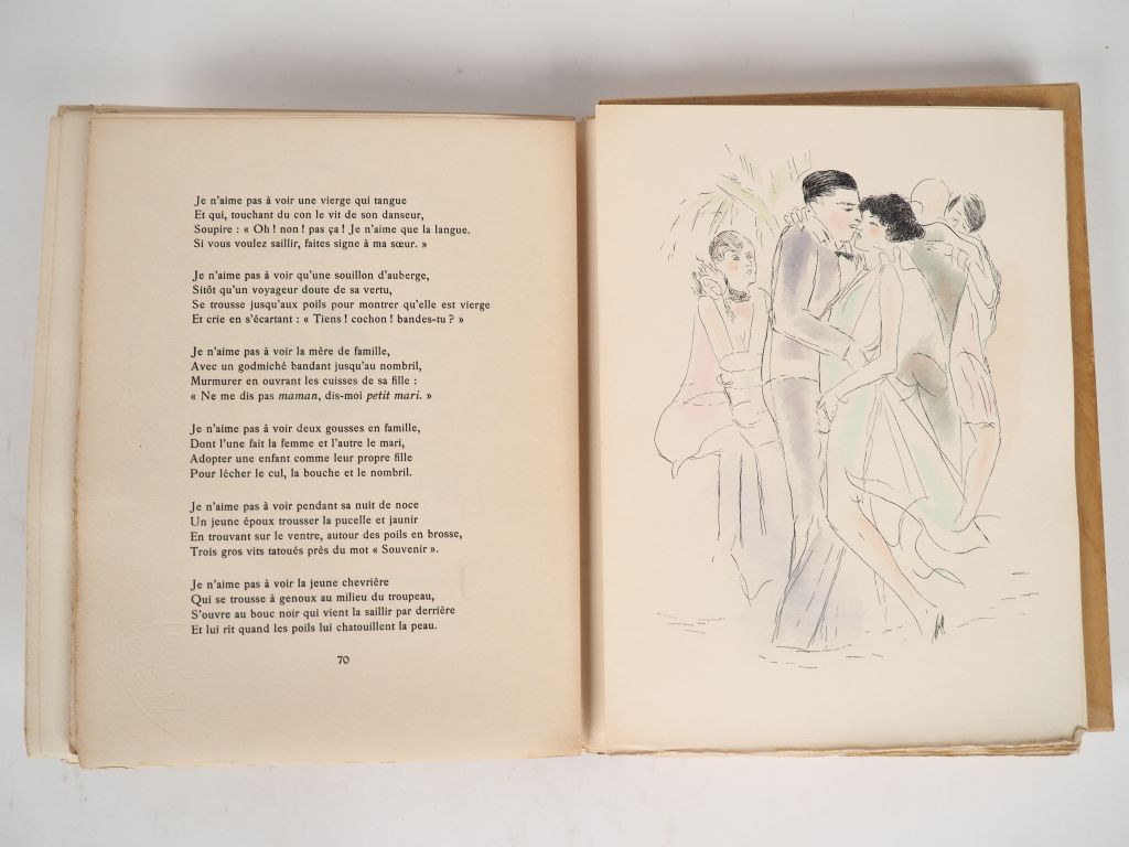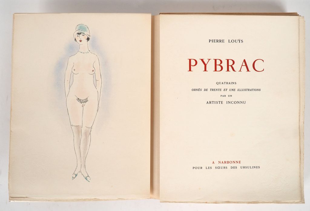 LOUŸS (P.). PYBRAC. Narbonne, Pour les Sœurs des Ursulines, [vers 1930]. In-4 en ff., étui cartonné. ÉDITION HORS-COMMERCE ILLUSTRÉE de 31 reproductions (dont 11 h.-t.) en phototypie des POINTES-SÈCHES en couleurs libres que Marcel VERTÈS réalisa pour l’édition de 1928. Tirage limité à 225 exemplaires numérotés sur Alfa vergé. UN des 165 numérotés sur vélin blanc pur fil du Marais. ¶ Dutel, 2281 – Pia, 1208.
