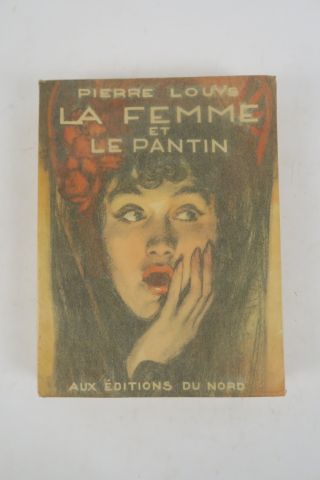 LOUŸS (Pierre). La Femme et le Pantin. Illustrations de Philippe SWYNCOP. Bruxelles, Editions du Nord, collection "Flamma Tenax" 1936. in-4, broché. Couverture, portrait et 16 hors-texte, en couleurs dont 2 en double. Tiré à 3000 ex. num. sur vélin.