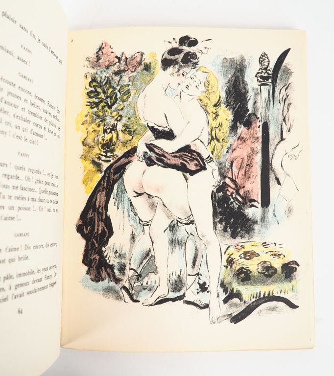 M.[USSET] (A. de). GAMIANI ou deux nuits d’excès. Édition Réalisée par les soins et au profit exclusif des « Vrais Amateurs Romantiques » (Groupement de bibliophiles), [vers 1940]. In-4 broché avec suite sous chemise papier, étui carton. ÉDITION ILLUSTRÉE par Henri Pasquinelli. Elle contient 20 lithographies couleurs h.-t. libres et 14 lithographies en noir dans le texte, ainsi qu’une SUITE à part des 14 planches dans le texte reproduites sur de grands feuillets pliés au format in-4. Ces lithographies sont de BERTHOMMÉ SAINT-ANDRÉ. Tirage limité à 697 exemplaires. UN des 445 numérotés sur chiffon de Rives. ¶ Dutel, 1650 – Pia, 575.