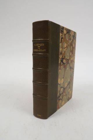 MENDÈS (Catulle). La Femme-enfant. Paris, Charpentier 1891. in-12. 1/2 chagr. vert olive, tête dor., couv. et dos (Rel. d'époque). Edition originale sur papier d'édition. Avec la signature aut. de Catulle Mendès sur la couverture.