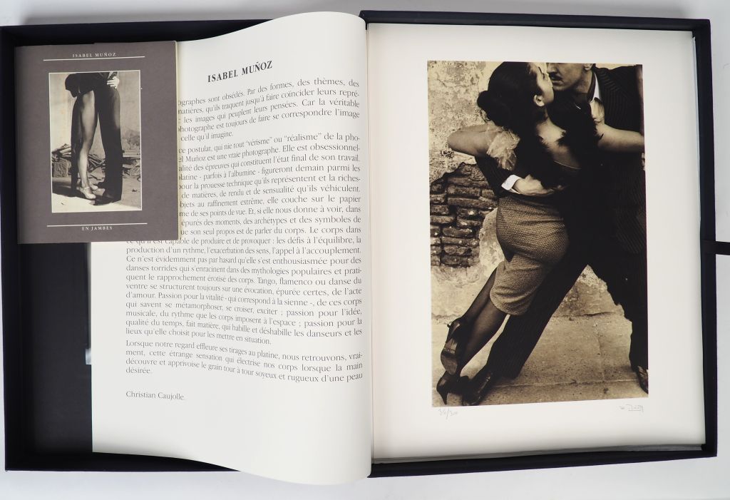 MUNOZ (Isabel). En jambes. Madrid, Azygos 1994. in-plano (53 x 42 cm) en ff. sous coffret à fenêtre. 4 photolithographies dont une signée. Légende imprimée sur papier de soie et préface par Christian Caujolle. Tirage limité à 300 ex. Complet du catalogue de l'Agence VI.