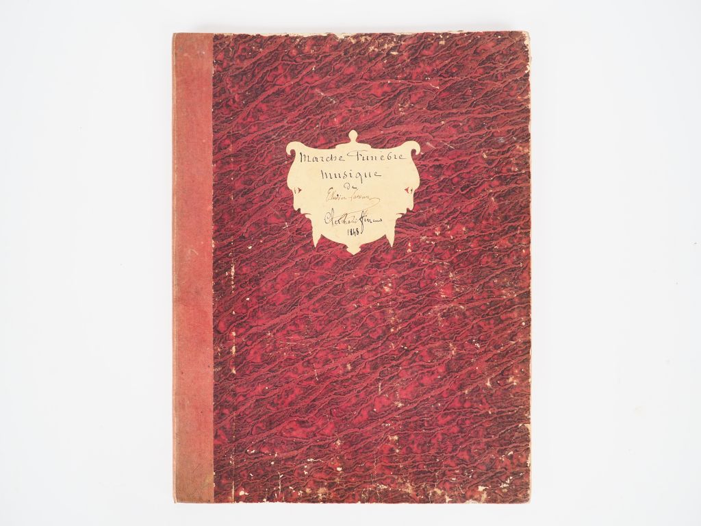 MUSIQUE VERDIER DE LA TOUR (E.) 12 partitions manuscrites originales. -Zibeline, Valse - Marche des Fiançailles - Inquiétude, valse pour piano. - Paysages asiatiques, Souvenirs de voyages, Musique pour piano. - Consolations ! Scènes pour piano. - 1er morceau de concert. - Chateaux en Espagne. Ouverture pour piano à quatre mains : 1874. - 111 promenades. Le soir, le matin, à midi. Emotions pour piano. - Scènes et paysages asiatiques. Souvenirs de voyage. Quadrille. 11 fascicules in folio en ff. Belles couvertures illustrées et calligraphiées. - Marche funèbre. Sextuor. Clermont-Ferrand 1848, in-folio cartonnage 1/2 toile.