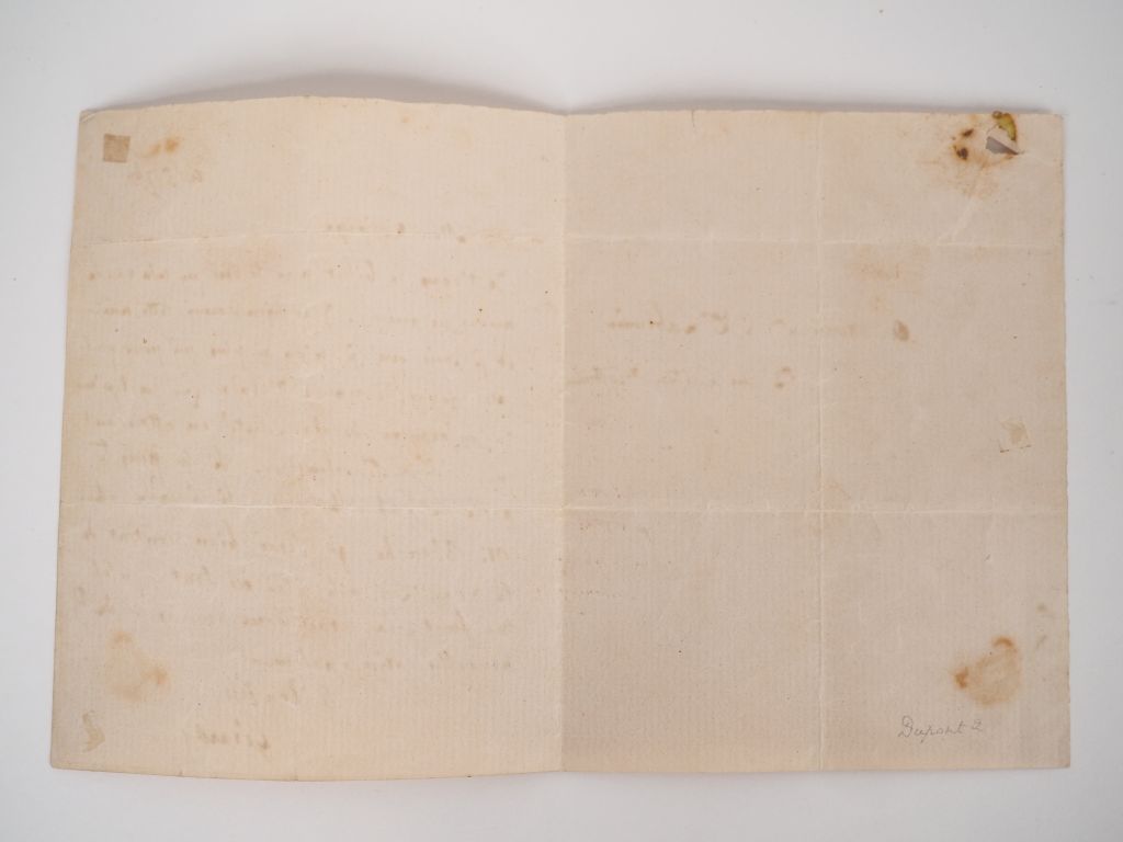 NERVAL (Gérard de). LETTRE AUTOGRAPHE SIGNÉE adressée à son père. Le 5 7bre / 1854. Une page in-16. ÉMOUVANT BILLET de la clinique du docteur Blanche à Passy où Nerval fut interné à plusieurs reprises pour des troubles psychologiques. « Mon cher papa, Je t’écris ce billet pour te dire que cela va de mieux en mieux. J’ai bien dormi cette nuit et je crois que je n’en ai plus que pour quelques jours de repos. J’espère que quelqu’un m’informera de ta santé en attendant que j’aille t’embrasser. Si tu peux te passer de Gabrielle envoie là à Passy chez M. Blanche, je serai bien content de la voir. Du reste, j’ai ici tout ce qu’il me faut. Ce serait donc pour avoir de tes nouvelles principalement. Ton fils, Gérard ». La date de « 1854 » qui a été ajoutée en tête de la lettre est sujette à caution puisque Gabrielle BENARD, qui s’est occupée du père de Nerval pendant une dizaine d’années, est décédée en octobre 1853. Le poète a fait deux séjours dans la clinique du docteur Blanche, à un an d’intervalle. Soit la confusion mentale du poète lui a fait oublier le décès de la servante et la date de « 1854 » est correcte, soit elle est à l’origine de son erreur pour la date. ¶ Correspondance, Édit. de La Pléiade, t. III, p. 890.