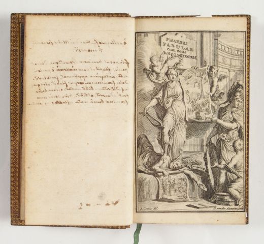 PHEDRE. Fabulae cum notis Phaedri, Aug. Liberti Fabularum Aeropiarum libri V. Cum notis. D. Hoogstratani. Amsterdam, G. Onder de Linden 1711. Pt in-12, 278 pp.-2 ff. Veau glacé havane, triple fil. dor. sur les plats, caissons et fleur. dor. au dos, dent. int. (Rel. du XIXe s.). Beau frontispice. Exemplaire très finement relié.