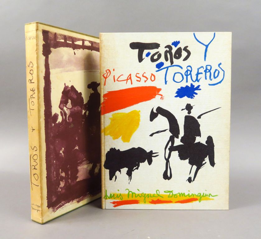 PICASSO (Pablo). Toro y Toreros. Texte de Luis Miguel DOMINGUIN et une étude de Georges Boudaille. Paris, Editions Cercle d'Art 1961. In-4. Reliure toile et étui illustrés. Rousseurs au dos de la reliure. Expert : Roger Roques - 06 12 15 30 68
