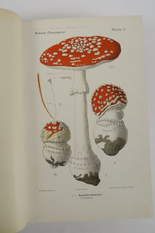 ROLLAND (Léon). Atlas des champignons de France, Suisse et Belgique. Aquarelles d'A. BESSIN. Paris, Klincksieck 1910. in-8. 1/2 basane verte, dos lisse, fil. dor. (Rel. d'époque). 120 planches coloriées représentant 283 espèces.